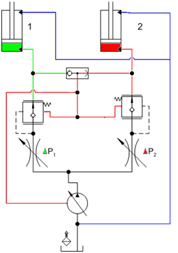 負(fù)載敏感控制系統(tǒng)的功率損耗較低,效率遠(yuǎn)高于常規(guī)液壓系統(tǒng)。高效率、功率損失小意味著燃料的節(jié)省以及液壓系統(tǒng)較低的發(fā)熱量。