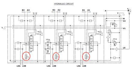 下圖中的梭閥就是用來比較每一聯(lián)的輸出流量和壓力,然后再通過LS口反饋到柱塞泵。