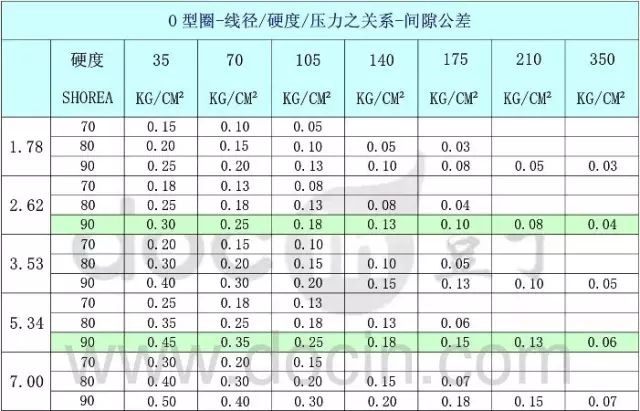 (2)O型圈-線徑/硬度/壓力之關(guān)系-間隙公差