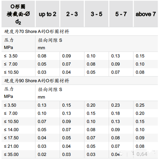 了可允許間隙的建議,表中數(shù)據(jù)來源于特瑞堡密封。它是一個(gè)關(guān)于