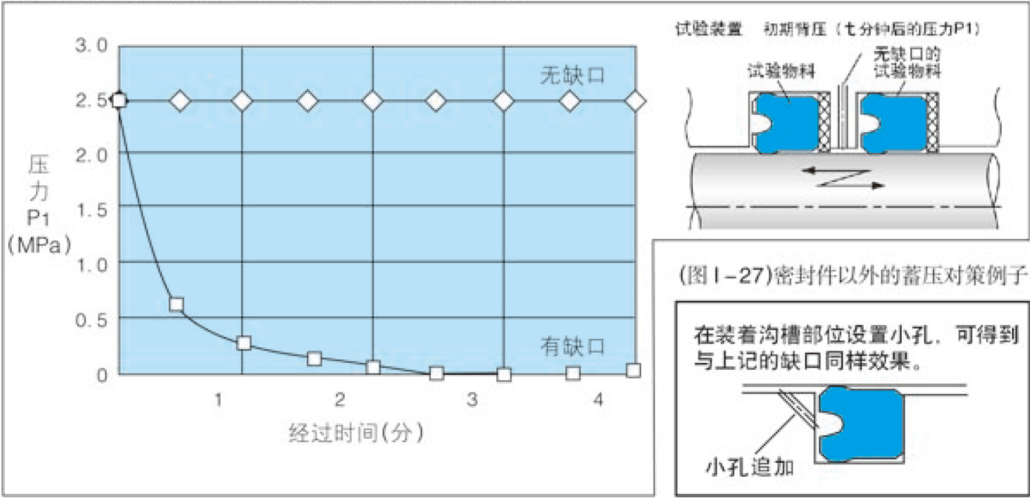 為此,NOK公司針對(duì)性的通過(guò)大數(shù)據(jù)實(shí)驗(yàn),來(lái)對(duì)比了有無(wú)缺口的所影響背壓泄露性能的差別。(NOK2010版密封件選型書(shū)P231)