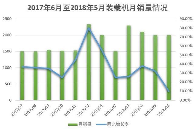 圖注:2017年6月至2018年5月裝載機(jī)月銷量情況
