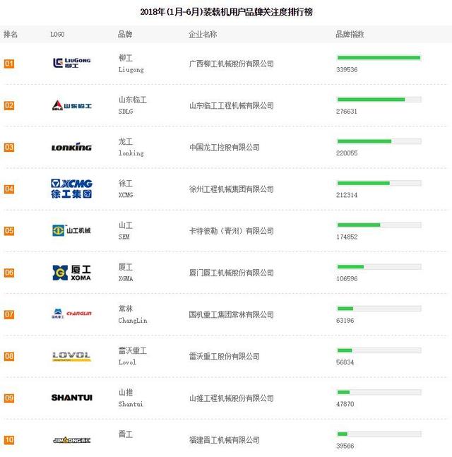 通過上半年裝載機(jī)用戶對品牌的關(guān)注排名榜看,以柳工、臨工、龍工三大工第一梯隊的鐵三角陣營沒有發(fā)生改變,依然占據(jù)裝載機(jī)品牌關(guān)注榜前三,通過用戶關(guān)注度也在一定程度上反映出品牌的銷售情況。(如下品牌關(guān)注度僅供參考)