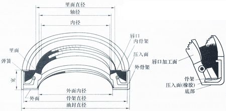 購買骨架油封到貨的時候。首先,檢查外觀質(zhì)量,骨架油封表面須干凈光潔,無毛刺、裂紋、氣泡、缺角及雜質(zhì)嵌入等缺陷;護(hù)油唇的邊緣為銳角,無缺口、毛邊及不均勻等現(xiàn)象;唇口與軸的接觸寬度一般為0.13~0.5mm,最佳寬度為0.25mm;橡膠與加強(qiáng)環(huán)的黏合要緊密無松動,不允許加強(qiáng)環(huán)偏位,內(nèi)、外表面不露鐵;骨架油封平面上壓出的凸字標(biāo)明“軸徑×外徑×高度”、制造廠名和商標(biāo),字跡應(yīng)清晰。