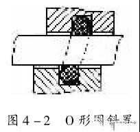 2) 回轉(zhuǎn)密封時(shí)O形圈可斜置。O形圈用于回轉(zhuǎn)密封時(shí), 線速度不能太大, 一般以O(shè).3~0.5m/s為宜, 否則會(huì)漏油。因?yàn)閛形圈用于旋轉(zhuǎn)密封時(shí), 在接觸處產(chǎn)生摩擦熱, 溫度 不斷上升, 在接觸處出現(xiàn)斷油現(xiàn)象造成磨損和老化。且處于拉伸狀態(tài)的橡膠遇熱產(chǎn)生收 縮現(xiàn)象 (焦耳效應(yīng)) 。即產(chǎn)生 “摩擦熱 , 收縮 , 箍緊力增大 , 產(chǎn)生摩擦力 , ??” 反復(fù)循 環(huán), 大大加劇了橡膠老化龜裂和磨損, 導(dǎo)致密封失效, 產(chǎn)生泄漏量與轉(zhuǎn)速有關(guān), 為此, 一般 將O 形圈內(nèi)徑設(shè)計(jì)成與轉(zhuǎn)軸直徑相等或稍大一些 (3~5%) 。在安裝時(shí)使 ( 形圈從外 向里壓縮, 并將斷面的壓縮量也設(shè)計(jì)得小一些 (約5%) 。此外, 盡量使用耐熱的材料, 并 考慮 O形圈的散熱和潤(rùn)滑。另外可斜置安裝O形圈 (圖4-2) 。采用這些措施后, 可達(dá) 到pu值 (密封壓力 6 線速度) 為5.6MPa*7.65m/s=42.84MPa.m/s的值。